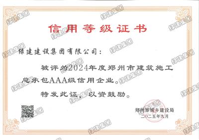2024年度鄭州市建筑施工總承包AAA級信用企業